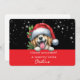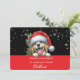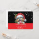 Agrega un toque de humor a tus felicitaciones navideñas este año con un perro sonriente en negro y rojo con el texto "¡Feliz Navidad!"