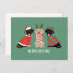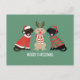 Ilustración adorable de tres Labradores Retriever vestidos con ropa de Navidad.
