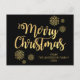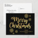 Tarjetas postales modernas personalizadas para la temporada de Navidad. Agrega tu nombre y mensaje en el reverso. Letra de caligrafía con brillo dorado falso sobre fondo negro (el color se puede cambiar). Patrón de copos de nieve y diseño de nieve. ¡Personaliza esta tarjeta postal para enviar a tu familia y amigos! Perfectos recuerdos familiares.