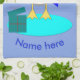 Esta impresionante toalla de cocina cuenta con un lindo pingüino gris y blanco con ojos negros turbios y pico y pies amarillos. El pingüino sostiene un gran pez azul con un pimiento y está parado sobre un trozo de hielo azul pálido. Al lado del pingüino hay un regalo abierto con una cinta festiva.