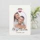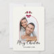 Diseño simple, dulce y moderno. Ideal para recién casados o la primera Navidad de una pareja. El diseño incluye un marco de foto arqueado con un pequeño lazo rojo y un par de petirrojos. Personalice la portada con su propia foto y edite fácilmente los nombres y el año. En el reverso, encontrará un lazo simple.