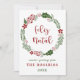 Corona de Navidad con temática navideña en verde y rojo, tarjeta de Navidad, con las palabras Feliz Navidad en portugués: Feliz Natal.