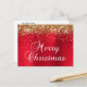 Un mensaje de texto de Feliz Navidad en un falso Relieve metalizado rojo y fondo purpurina de oro. Una moderna y brillante postal de vacaciones para tus parientes. Crea tu propio mensaje de texto en la parte posterior.
