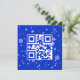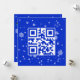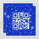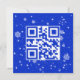 Código QR azul y blanco que lee Feliz Navidad en un fondo azul con copos de nieve dispersos. Se puede cambiar el fondo. Se puede cambiar todo el texto.