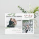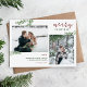 Un personalizado asequible imprimió tarjetas de foto navideñas con plantillas sencillas para la personalización. El diseño incluye texto de Feliz Navidad, una plantilla de collage de fotos con espacio para 2 fotos y tu saludo personalizado, acentuado con elegantes y sencillas ramas de vegetación acuática. Utilice las herramientas de diseño para editar fuentes y colores o cargar más fotos para crear una única tarjeta de fotos navideña.
