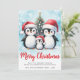 Permita que esta tarjeta festiva azul y roja que incluye una familia de pingüinos adorables le ayude a enviar a sus seres queridos los mejores deseos y saludos. Esta alegre tarjeta de Navidades con el dicho "Feliz Navidad" tiene un texto de plantilla donde puedes escribir tus saludos, nombre de familia y año. En el fondo, hay un calendario 2025 (de domingo a sábado) que hace las tarjetas prácticas para todo el año. El calendario con meses en el tipo de letra del guión se coloca en un fondo azul pastel.