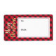 Celebra la época mágica y festiva de las fiestas con nuestras etiquetas de regalo de pegatinas navideñas personalizados. El diseño presenta un patrón de estampado de búfalo rojo y de moda con "Feliz Navidad" mostrado en una tipografía de escritura de broche en oro falso.