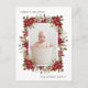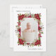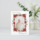 Poinsettias rojas y vegetación en blanco y moderno Navidad foto de tarjetas postales de bienvenida con texto, "Feliz Navidad" y tu apellido. Póngase en contacto con nosotros para obtener ayuda sobre la personalización o para solicitar productos de correspondencia o coordinación.