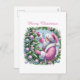 Tarjeta navideña rosa Santa de navidad
