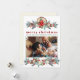 Rústica tarjeta de vacaciones navideñas de invierno moderno con borgoñas rojas y sabrosas fronteras verdes con pinos, bayas, boughs y follaje sobre un fondo blanco. +++++++++++ Personalízalo con tu texto y firma familiar y tu imagen.