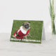 Adorable pug con traje de Santa deseando a todos una Feliz Navidad.