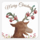 Feliz dibujo de una acuarela de reno navideña en un texto personalizado, pegatina de fondo.