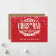 Clásica Feliz Navidad y Feliz Año Nuevo con copas de nieve en la oficina, tarjeta de vacaciones con copos de nieve cayendo sobre un fondo rojo festivo con un saludo de Navidades ambientado en una elegante tipografía. Personalice agregando el nombre de su empresa. Puede agregar un mensaje estacional al revés o si prefiere dejarlo en blanco simplemente elimine el texto. Diseñado por Thisisnotme©
