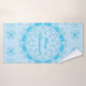 Feliz texto navideño redondo marco copo de nieve blanco azul
