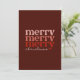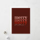 Esta carta festiva tiene el texto Merry, Merry en tonos rosas y rojos, así como los Navidades de texto en blanco. Esta tarjeta de estilo clásico y retro le da un gran toque personalizado a sus saludos de temporada. (El color rojo de fondo puede cambiarse según sus preferencias, sólo vaya al área de personalización.)