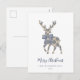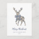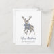 Este diseño incorpora toile francés azul y estilos coquetos, mezclados con un gráfico de reno. Texto: "Feliz Navidad", editable para el saludo de su elección y fácil de personalizar con su nombre o el de su familia.