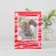 Feliz Navidad en letra cursiva negra. Personaliza tu nombre y agrega tu foto. Opción para agregar una actualización anual en la parte posterior, o solo Navidad 2020 (use el botón de personalizar). Fondo rojo brillante festivo con rayas modernas texturizadas y explosiones de estrellas blancas brillantes. Tu foto tendrá una explosión de estrellas en la esquina inferior izquierda, así que se verá genial si la parte inferior izquierda de tu imagen es más oscura. Diseño gráfico original.