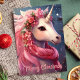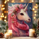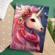 Envía un toque mágico esta temporada navideña con esta encantadora tarjeta que presenta un hermoso unicornio decorado con flores rosadas y una bufanda festiva. El mensaje de "Feliz Navidad" añade un encanto caprichoso, perfecto para enviar saludos alegres a amigos y familiares que aman la fantasía y el asombro.