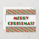 La parte delantera de este divertido y festivo diseño de postales incluye el mensaje "¡FERIÉNDOSE NAVIDAD!" con letras de color rojo y verde, junto con un patrón de rayas rojas, blancas y verdes. La parte posterior incluye un mensaje personalizado. Las postales como esta pueden ser una manera divertida de dar saludos navideños a amigos y familiares.
