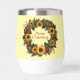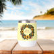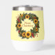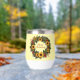 Navidades personalizados Barware con una guirnalda única de girasoles y flores azules. Vidrio de Navidad, un regalo único para los Navidades para alegrar el ambiente de su mesa durante estas vacaciones.