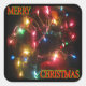 El pegatina cuadrado representa una corona adornada con bombillas multicolores y un superpuesto de texto que dice: "Feliz Navidad". Las esquinas biseladas mejoran la vida del pegatina (adherencia) al reducir la tendencia a la infiltración. Disponible en hojas de 6 (seis) pegatinas de 3" o 20 (veinte) pegatinas de 1 y 1/2".