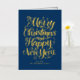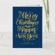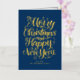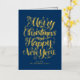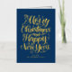 ¡Feliz Navidad y Feliz Año Nuevo! Envíe sus deseos de vacaciones a amigos y familiares con esta tarjeta de Navidades de personalizable. Esta tarjeta de Navidades de Relieve metalizado dorado presenta caligrafía moderna. Personalice agregando sus detalles. Esta tarjeta de vacaciones de Relieve metalizado dorado está disponible en otros colores y material de cartón. Los elementos coincidentes están disponibles.