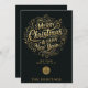 Envía saludos elegantes de la temporada con esta tarjeta navideña negra y dorada y Feliz Año Nuevo. Diseñada con un lujoso fondo negro y una tipografía de escritura dorada brillante, esta tarjeta se puede personalizar con su logotipo, foto o nombre, lo que la convierte en perfecta para empresas, familias o personas que quieren un toque sofisticado a sus deseos de vacaciones. Una manera atemporal de compartir la alegría festiva y dejar una impresión duradera.