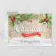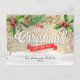 Feliz Navidad y Feliz Año Nuevo Plantillas de Postales para Saludos - Navidades Flor de Poinsettia, Rama de Árbol de Pino y Berries Rojas Mistletoe en Tierra de Nieve.