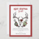 Esta tarjeta de Navidades del país occidental "Feliz Navidad y Todos" incluye ilustraciones occidentales dibujados a mano de un cráneo de renos adornado con rosas rojas y cactus festivos con tinta negra. Nombre y mensaje de personalizable. La parte trasera presenta un lindo patrón de estos elementos de país. Elegante fondo blanco.