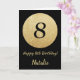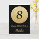 Feliz 8° cumpleaños, tarjeta Purpurina negra y dorada con nombre personalizado. Para más personalización, haga clic en el botón "Personalizar" y utilice nuestra herramienta de diseño para modificar esta plantilla.