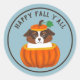 ¡Feliz otoño! Este pegatina presenta un adorable pastor australiano cachorro en una calabaza que dice "Happy Fall Y'all" pero puedes personalizar el imán reemplazando el mensaje por tu propio mensaje o nombre (por ejemplo, Hello Pumpkin).