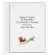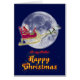 Una alegre tarjeta de Navidades que muestra a Santa Claus montando en el trineo tirado por un reno. Están volando más allá de la luna llena en el cielo. Una buena carta para decirle Feliz Navidad a tu padre.