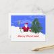 Postal con mi imagen original de Santa Claus sosteniendo una pala de nieve mientras estaba de pie en la nieve profunda. El texto del personalizable dice "¡Feliz Navidad!"
