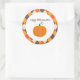 Un patrón de argyle de otoño rodea este lindo pegatina redondo de 3". Dáselos para que los invitados se peguen en sus camisetas o adornen bolsas o cajas de favores.