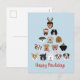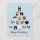 Ilustración de muchas razas diferentes de perros. Están vestidos con atuendos festivos. Las cabezas de estos perros se utilizan para crear la forma de un árbol de Navidad para la temporada festiva.