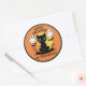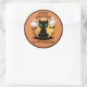 Divertido pegatina de Halloween con un gato negro con grandes ojos, murciélagos y fantasmas deseando a la familia y amigos "Happy Haunting on Halloween" - perfecto para tarjetas, sobres, regalos y más! Hay diferentes tamaños disponibles.