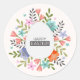 Feliz pegatina de Pascua con un huevo blanco y flores de colores alrededor