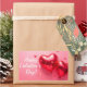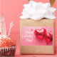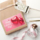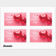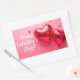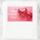 Feliz pegatina del Día de San Valentín con globos con forma de corazón rojo en fondo rosa