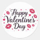 Feliz pegatina del Día de San Valentín con besos de pintalabios rojos sobre fondo blanco