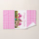 Esta toalla de Pascua presenta un diseño de gingham blanco y rosa bonito. En el centro de esta toalla de mano hay un elemento blanco con un bonito conejo en un jardín de flores de tulipán. Sobre el diseño de Semana Santa se encuentra el saludo "Happy Easter". Use esta toalla de mano en el baño o en la cocina. Un conjunto de dos toallas sería un regalo de vacaciones o de limpieza pensante para ella.
