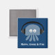 Imán azul oscuro con una medusa azul lindo con auriculares y las palabras "Feliz, feliz y libre" Si quieres cambiar el color de fondo solo tienes que hacer clic en el botón "Personalizar". El texto también es personalizable - muchas fuentes y colores para elegir. Por favor visite mi tienda Sober Princess por regalos únicos y divertidos para la gente que se recupera del alcohol y la adicción a las drogas - y regalos con mensajes espirituales/inspiradores. Todos los ilustraciones creados por un alcohólico en recuperación.