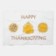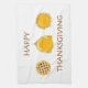 FELIZ DANDO LAS GRACIAS a la toalla de cocina de pavo, arte de Kristie Hubler, con tarta de calabaza que tiene un frondoso borde de costra de pastelería, un pavo asado de Acción de Gracias, y un pastel de repostería de arbusto y arándano de arándano.
