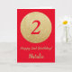 Feliz 2º cumpleaños, tarjeta de Purpurina roja y de oro con nombre personalizado. Para una mayor personalización, haga clic en el botón "Personalizar" y utilice nuestra herramienta de diseño para modificar esta plantilla.