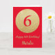 Feliz 6º cumpleaños, tarjeta Purpurina roja y dorada con nombre personalizado. Para más personalización, haga clic en el botón "Personalizar" y utilice nuestra herramienta de diseño para modificar esta plantilla.