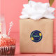 Usa a estos pegatinas festivos en regalos para amigos, o para decorar tu sukkah. El diseño incluye un lulav con ramas de palma, sauce y mirto, con flores rosas en forma de círculo. Las palabras "Happy Sukkot" se muestran en el centro del marco sobre un fondo azul oscuro.