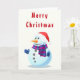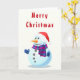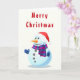 Feliz tarjeta navideña con feliz hombre de nieve