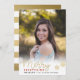 Esta tarjeta hermosa ofrece su foto, copos de nieve y saludo de familia en oro. Añada su información usando la forma de la plantilla. Utilice la característica del personalizar para cambiar la fuente y la disposición y para añadir el texto y las fotos a la parte posterior de la tarjeta.