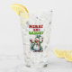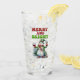 Un divertido y alegre diseño de Navidades exhibe a un muñeco de nieve alegre vestido con un largo abrigo verde con un sombrero superior a juego, bufanda roja y mitones. Él sostiene un vaso de vino tinto en una mano y un vino blanco en la otra. El texto rojo y verde festivo dice: "Feliz y brillante". Este diseño está disponible en una variedad de productos, lo que lo convierte en un regalo perfecto para los amantes del vino.