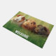 Este encantador aparador de puertas acoge a los huéspedes con tres adorables cobayas escondidas en un exuberante césped. La decoración alegre se combina con la palabra "Bienvenidos", creando un atractivo y atractivo añadido a la entrada. Perfecto para los amantes del conejillo de Indias, esta alfombra de puerta combina la practicidad con un diseño único y reconfortante que seguro traerá sonrisas a todos los que visiten su casa.