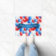 Doormat mostrado con un diseño de impresión patriótico de globos rojos, blancos y azules. Personalizar esta alfombra o compra como está.